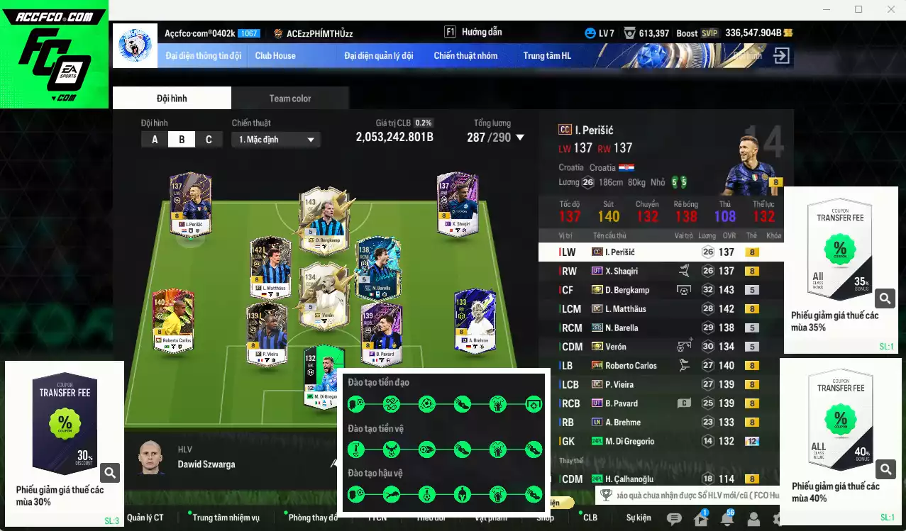 ACC FC Online còn nhiều BP team Inter Milan 2.053.240b dư 330kb có: