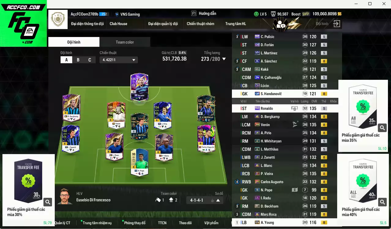 ACC FC Online team Inter Milan 531.720b dư 109.000b có:
