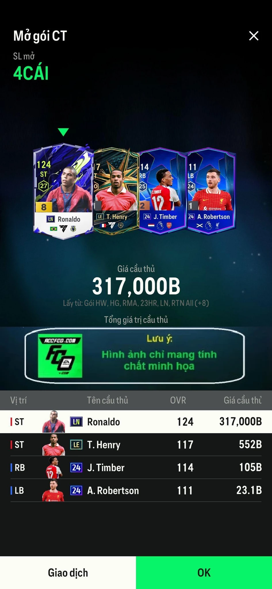 accfco.com là một trong những địa chỉ được nhiều anh em FO4 lựa chọn khi cần mua acc mở thẻ, acc đội hình hoặc các dịch vụ liên quan.