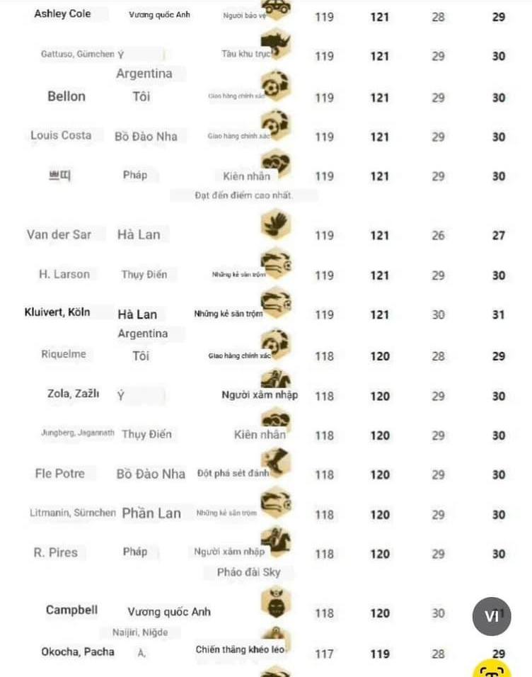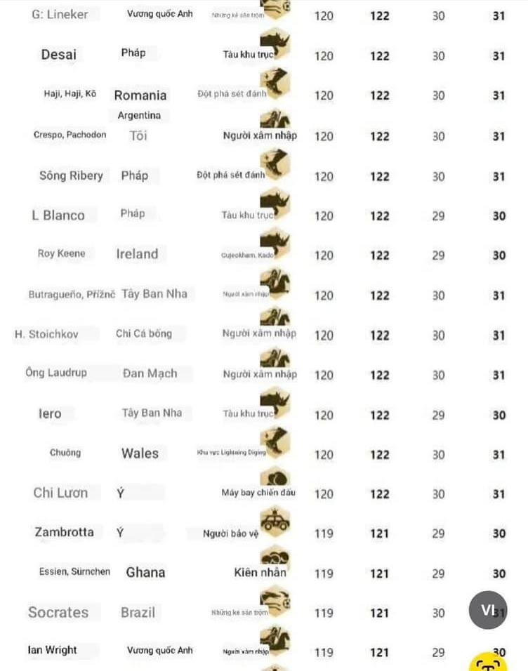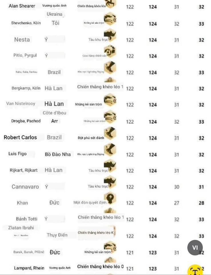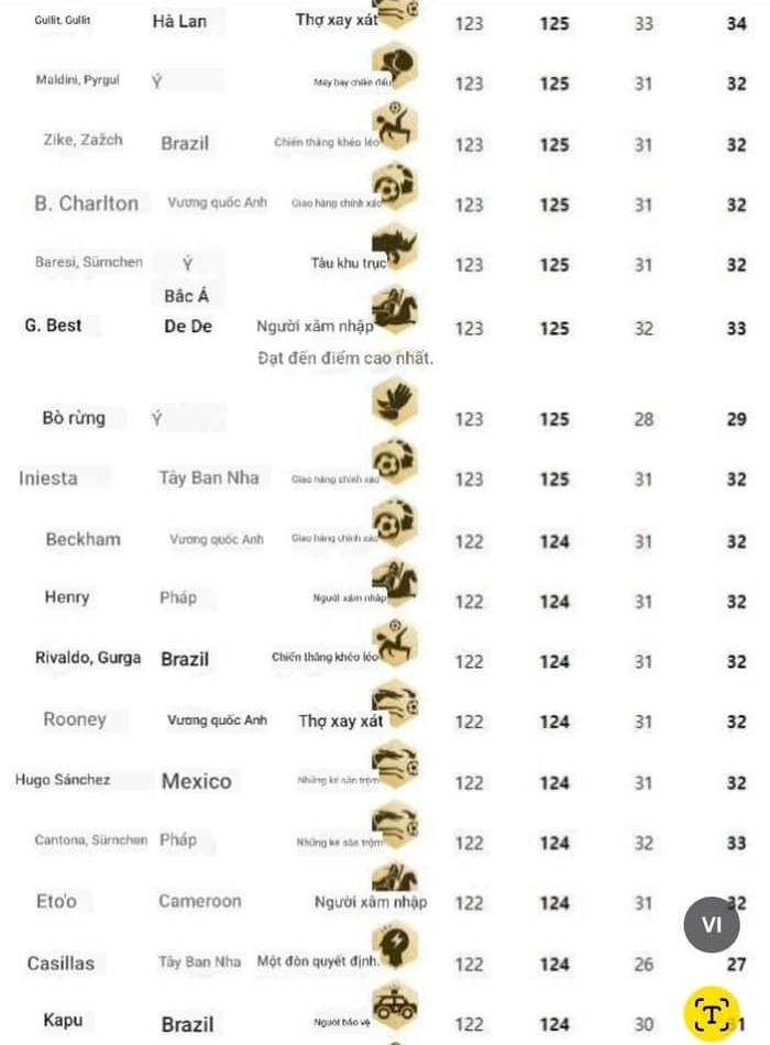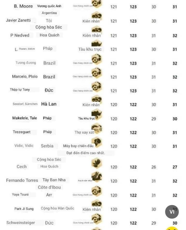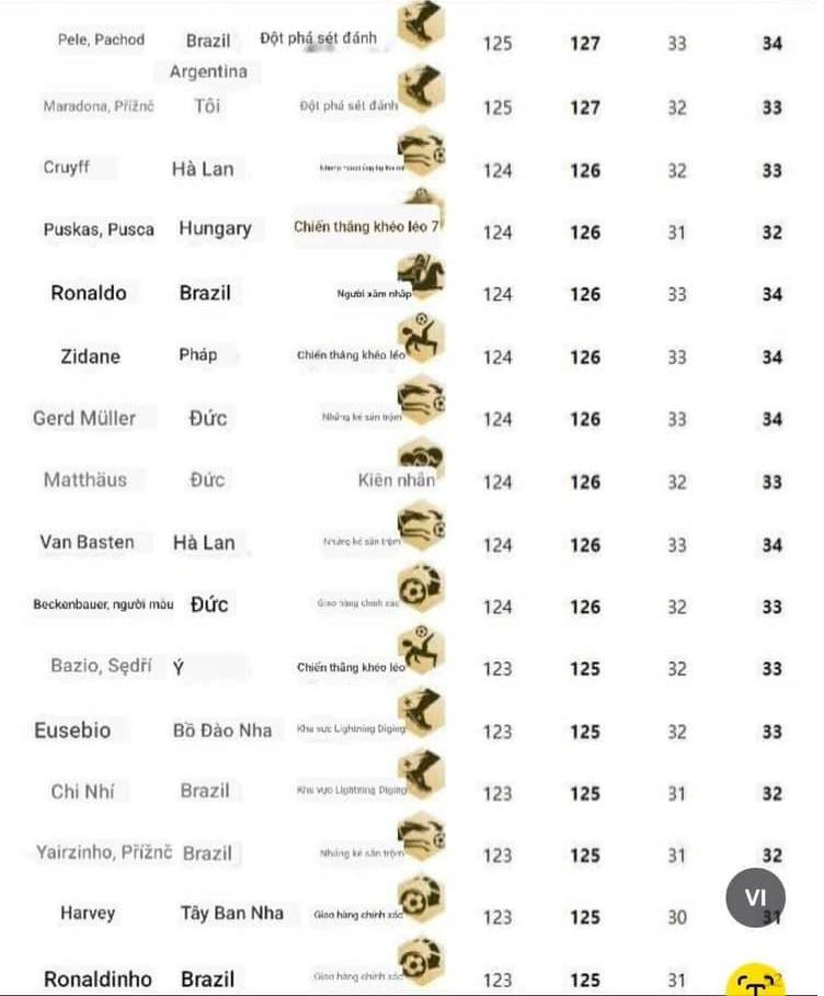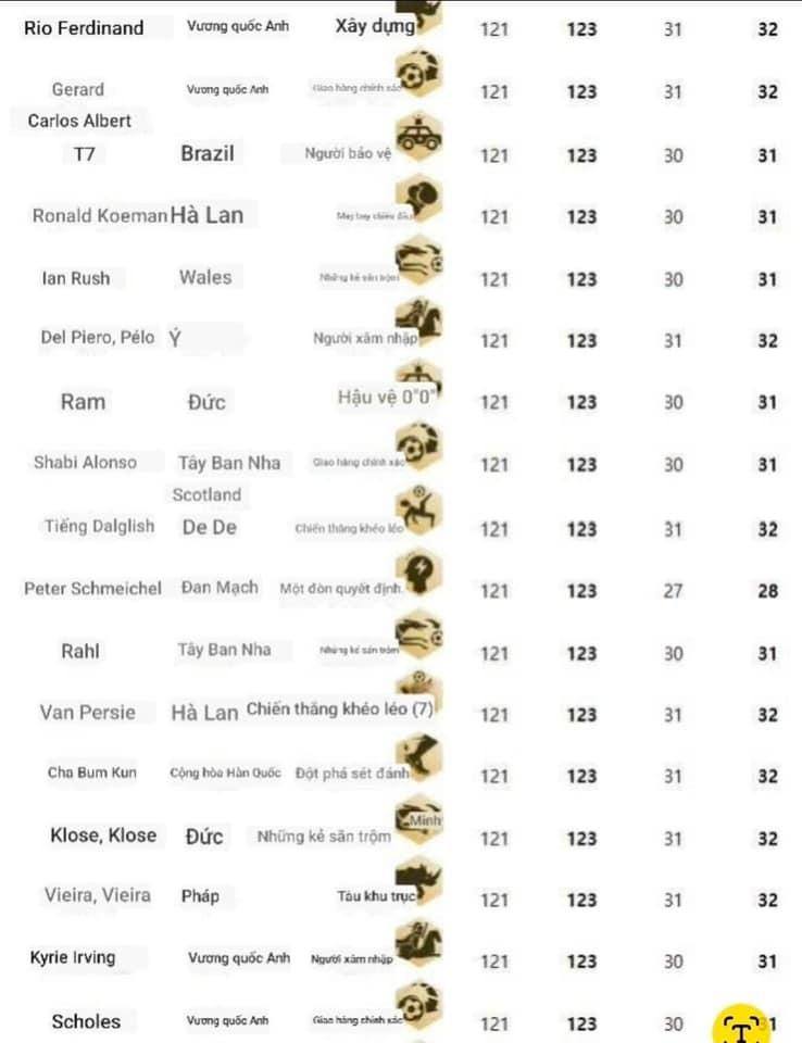 Tất nhiên là có tăng +2 OVR và +1 lương. Dưới đây là Chi tiết các chỉ số ẩn Vàng cụ thể của từng cầu thủ ITM sẽ được thêm: